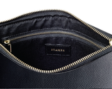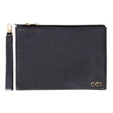 100% Premium Grained Leather Clutch, with choice of Gold, Silver and No Color Embossing. Includes detachable wristlet strap, 3 card slots, and a zipped pocket inside. Perfect to keep accessories and makeup in place.