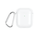 Keep your Airpods perfectly safe with this hard clear case. Compatible with Airpods 1 and Airpods 2. The keychain easily attaches to your backpack, keys or purse.