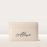 Made from premium pebble-grain leather. This card holder includes 4 card slots and 1 center compartment for more cards or bills.